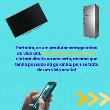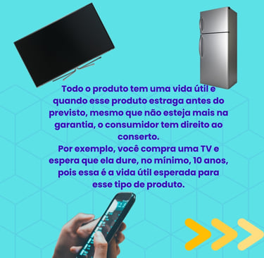 Contudo, todo o produto tem uma estimativa de durabilidade razoável, o que se chama de vida útil do produto. Portanto, espera-se, ao comprar um determinado produto, que ele durará um certo tempo. Por exemplo, é razoável pensar que um televisor dure, no mínimo, 5 anos. Se o produto estraga antes desse prazo, você poderá obter a troca ou desfazimento do negócio ainda que não esteja mais na garantia.